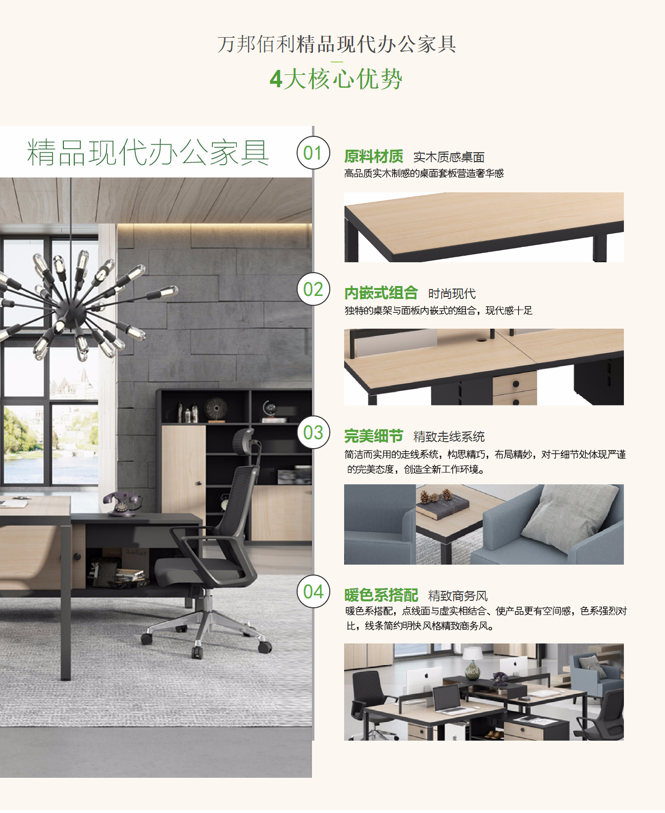北京萬邦佰利家具有限公司是一家專注于辦公家具生產(chǎn)、批發(fā)銷售的公司。銷售的產(chǎn)品有:班臺(tái)、經(jīng)理桌椅、會(huì)議桌椅、員工桌椅、文件柜、密集柜、視屏?xí)h桌、辦公沙發(fā)、學(xué)校家具、銀行家具、戶外家具、醫(yī)院家具等產(chǎn)品,公司自成立以來始終堅(jiān)持以人才為本、誠信立業(yè)的經(jīng)營原則,堅(jiān)持用企業(yè)文化提升企業(yè)核心競爭力,使企業(yè)在發(fā)展中處于良好的形象.我公司主要服務(wù)于企業(yè)單位的家具定制服務(wù),為各大企業(yè)量身定做整體環(huán)境的家具設(shè)計(jì)全程服務(wù),我們的整體產(chǎn)品服務(wù)...